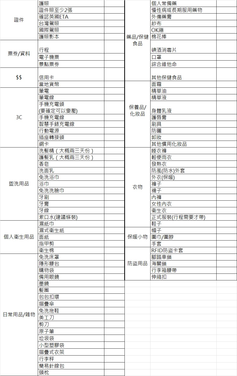 經歷了一次親身體驗,爆鼠決定將燒腦擬了很久的打包清單在這邊說清楚講明白,希望也能提供小小的貢獻給春天、秋天要去歐洲旅遊的各位!