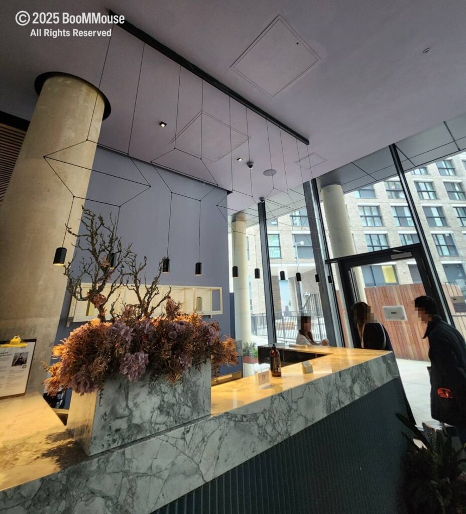 Leman Locke整體小而溫馨,一樓除了入住櫃檯旁邊就是交誼廳,為什麼稱之為”交誼廳”?爆鼠個人覺得沒有到飯店lobby的規模,但也是個不小且舒適的休息空間。櫃檯後方便是電梯,同時也通往Frequency Coffee Aldgate這家咖啡廳,另外也有一些基礎的公共設施,像是公廁、健身房、洗衣房。