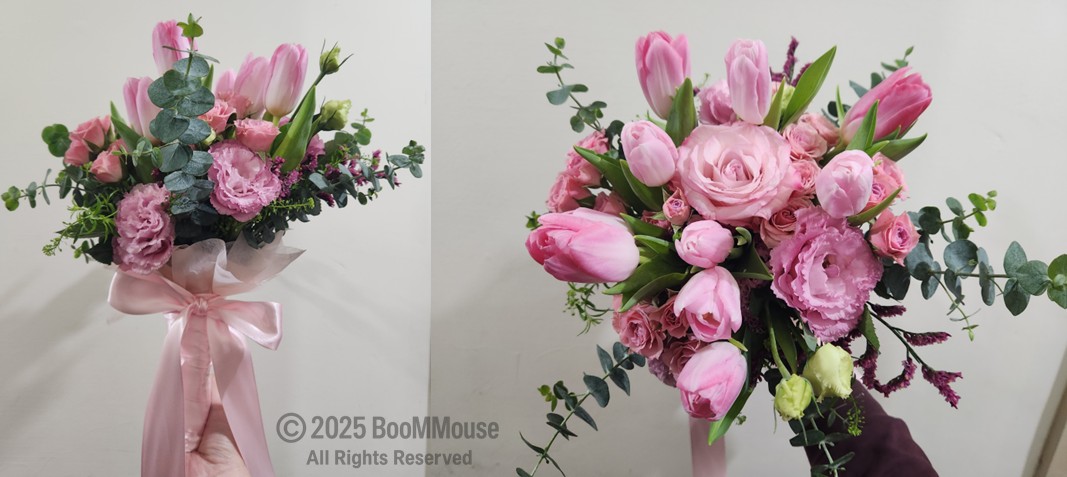 喔對了!前面提到因為爆鼠對於”花”很挑剔,網路上看了好幾間花藝店都不甚滿意。爆鼠雖然會畫畫美感應該還算可以,但對於花藝則沒頭緒,最後所幸將自己的需求及預算跟Alicia說,請香格里拉的花坊設計捧花,感謝Alicia精準的轉述需求,最後的捧花比爆鼠預料中的還美,花材也十分新鮮,而且沒有因為是由飯店服務價格比外面花藝店貴,婚禮結束後,爆鼠與沙袋貓登記結婚的捧花也是請Alicia委託飯店花坊設計製作!